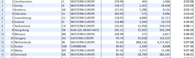 Në krye të listës, përveç Lihtenshtajnit janë edhe disa vende të vogla si Xhersi dhe Gjibraltari, ndërsa në top 10 vendet e para janë edhe Luksemburgu dhe Monako. Tabela globale e shpejtësisë së Internetit për vitin 2020 tregon se Evropa Perëndimore dominon, sepse tetë nga dhjetë vendet në botë me rrjet më të gjerë të shtrirjes gjenden në atë pjesë të kontinentit.