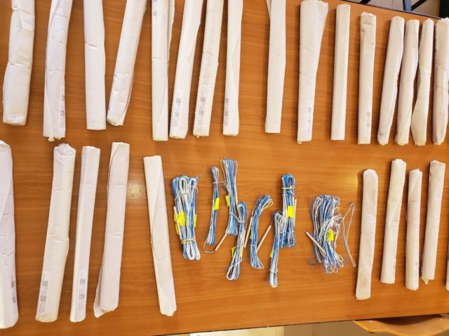 Pas kontrollit të ushtruar në bagazhin e mjetit janë gjetur dhe sekuestruar në cilësinë e provës materiale 29 kallëpe me lëndë eksplozive, me peshë 18 kg, si dhe 15 kapsolla detonatore, të cilat këta shtetas do t’i shisnin kundrejt vlerës 12.000 euro.