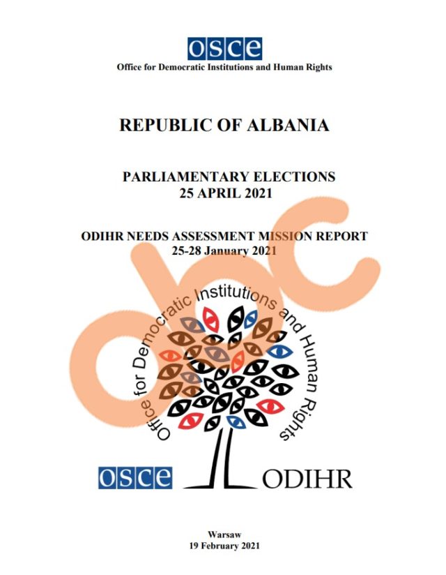 OSBE-ODIHR ka publikuar sot raportin paraprak të vlerësimit të nevojave për zgjedhjet parlamentare të 25 prillit që janë në prag. Për të ndjekur procesin në Shqipëri do të vijnë 24 vëzhgues afatgjatë si dhe 250 vëzhgues afatshkurtër për ditën e procesit të votimit dhe numërimit në të gjithë vendin.