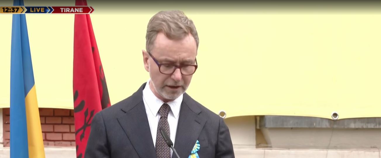 I pranishëm në ceremoni, ambasadori i Bashkimit Europian në Shqipëri, Silvio Gonzato, u shpreh se 24 shkurti mbetet një ditë e paharrueshme. Ai theksoi se pas katër vitesh luftë, Bashkimi Europian mbetet i vendosur për të parë drejt një të ardhmeje ku agresioni rus do të marrë fund.