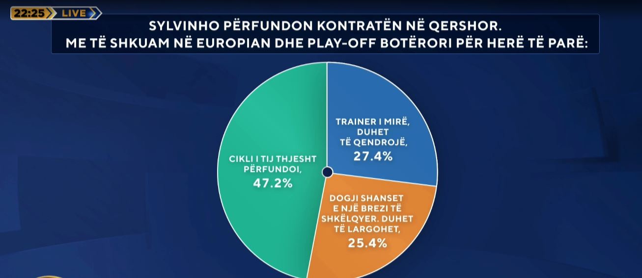 Pyetjes se nëse duhet të qëndrojë Sylvinho apo jo, 47 përqind e shqiptarëve thonë se Sylvinho do të shkarkohet pasi cikli i tij përfundoi, 25% të tjerë thonë se Sylvinho me filozofinë e tij dogji shanset e një brezi për të shkëlqyer, ndaj duhet të largohet.