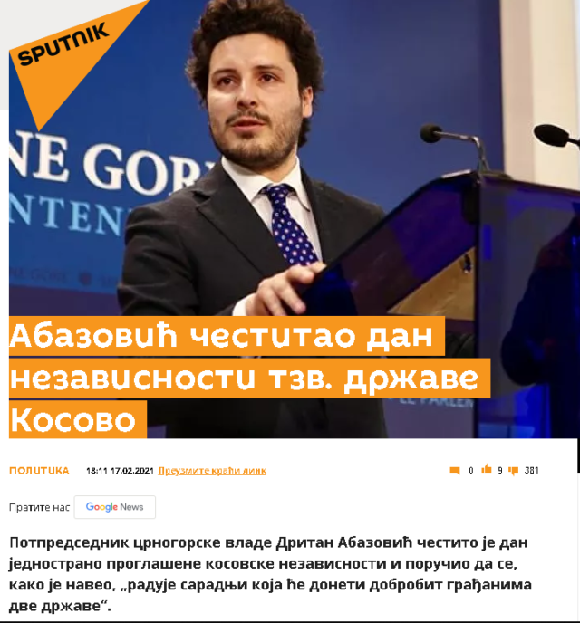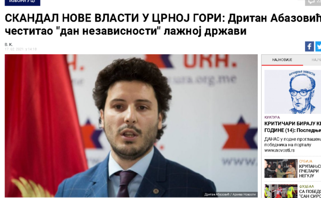 Abazović uroi të ashtuquajturën Ditën e Pavarësisë. shteti i Kosovës