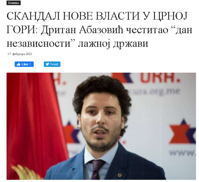 Abazović uroi të ashtuquajturën Ditën e Pavarësisë. shteti i Kosovës