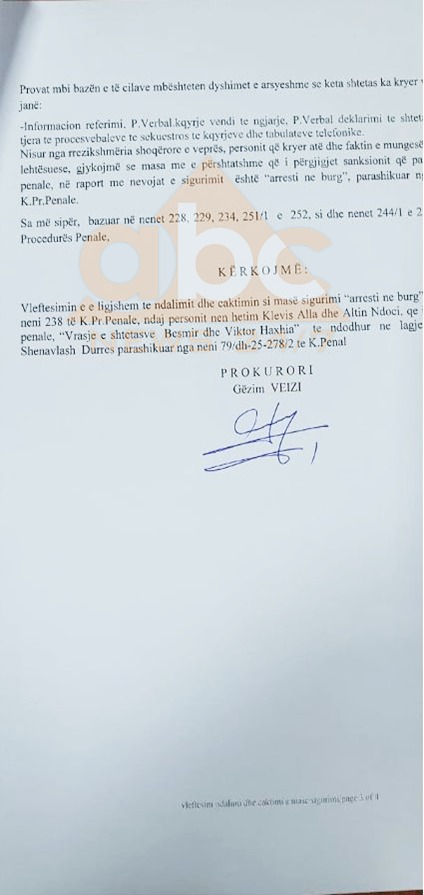 Gjykata la sot në burg, autorët e dyshuar Altin Ndoci dhe Klevis Alla. Sipas dosjes së prokurorisë vëllezërit janë ndjekur dhe më pas janë parakaluar me një automjet, ku më pas janë qëlluar me armë zjarri. Autorët që qëlluan kanë qenë në një mjet “Toyota”, pasi në vendgjarje janë gjetur pjesë xhami të automjetit të autorëve.