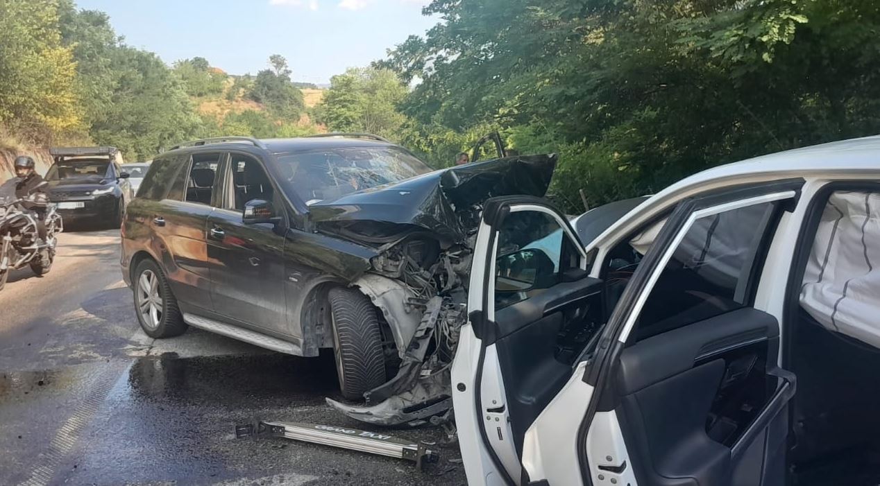 Dy automjete janë përplasur kokë më kokë, ndërsa raportohet se tre persona kanë përfunduar të plagosur. Një nga mjetet e përfshira në aksident është taksi.