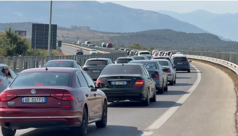 Si pasojë e aksidentit dhe bllokimit të përkohshëm të qarkullimit, në këtë segment rrugor është krijuar trafik i rënduar. / abcnews.al /