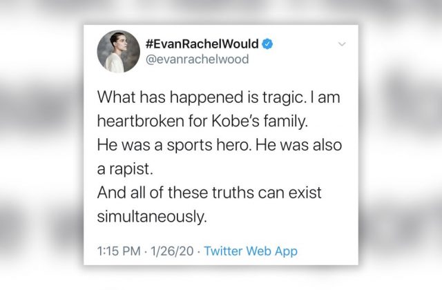 Aktorja Evan Rachel Wood ka marrë komente pafund pasi e quajti basketbollistin Kobe Bryant “përdhunues”, vetëm disa orë pas vdekjes së tij .