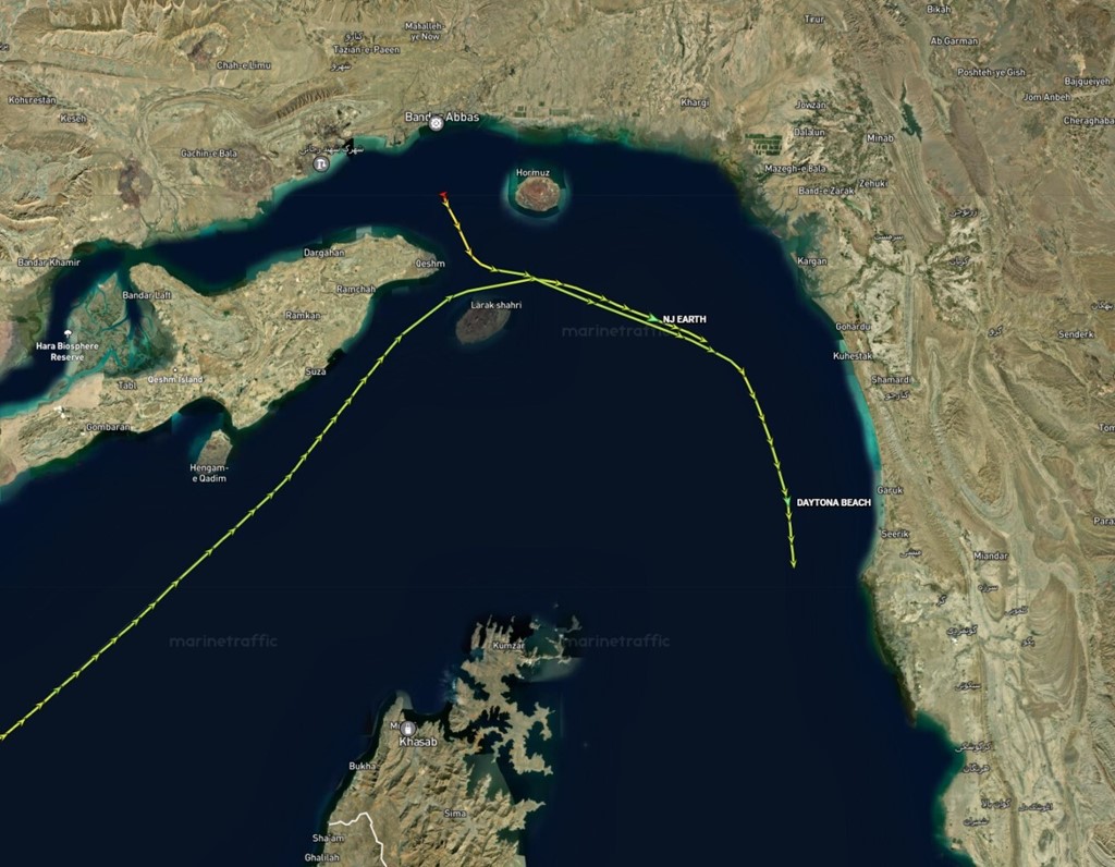 Anija transportuese e mallrave të mëdha NJ Earth, e ngarkuar në Bushehr, tani është nisur për në Indi. Anija tjetër, Daytona Beach, është gjithashtu një transportuese e mallrave të mëdha dhe u nis nga Bandar Abbas.