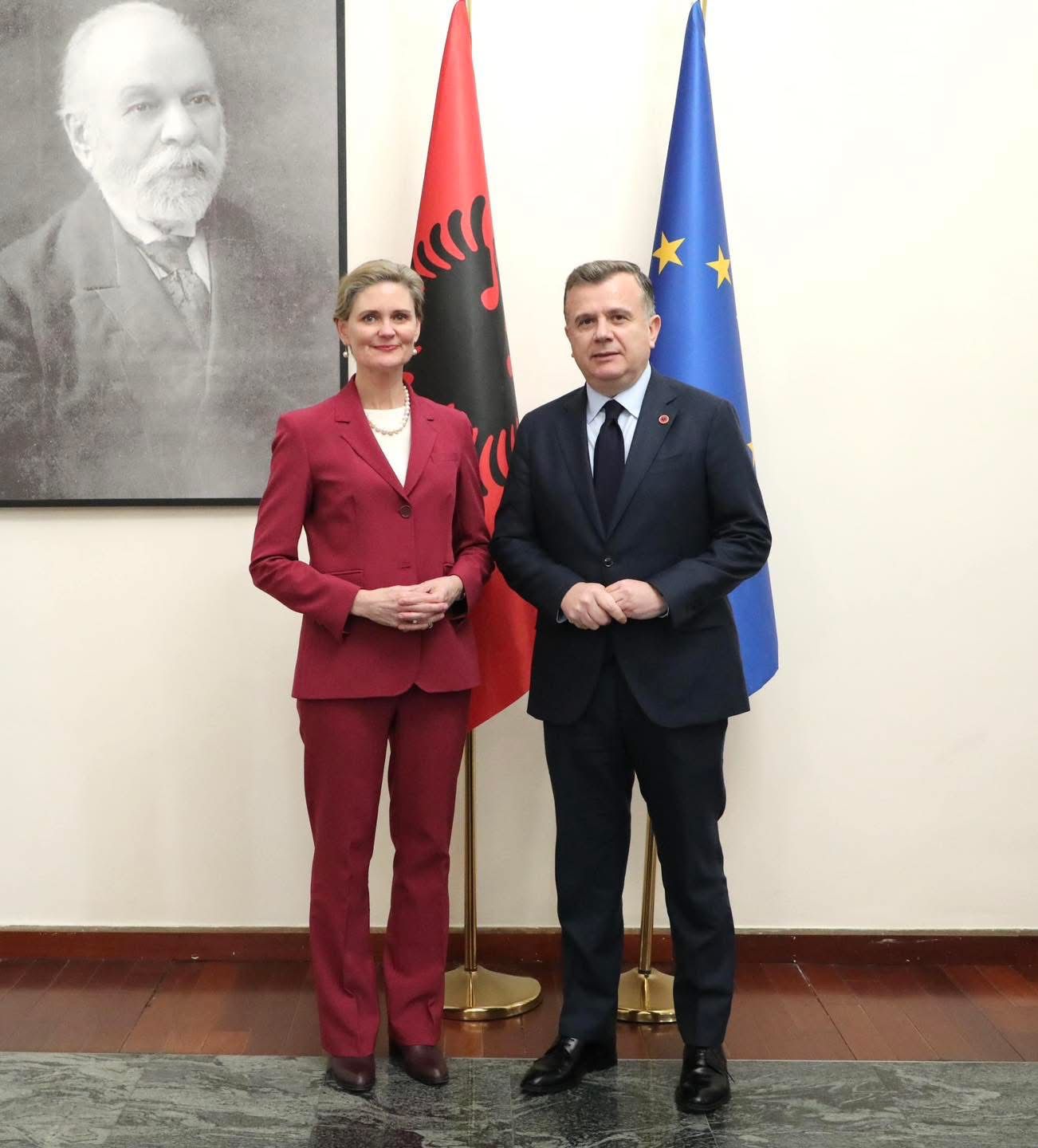 Ndërsa nesër në Washington Presidenti Donald Trump mirëpret Kryeministrin Edi Rama dhe aleatë të tjerë në mbledhjen e parë të Bordit të Paqes, u takova sot me të Ngarkuarën me Punë Nancy VanHorn. Temat e diskutimit ishin të shumta dhe produktive. Jemi krenarë që Shqipëria do të mirëpresë vitin e ardhshëm Samitin e NATO-s dhe mbështesim vizionin e Presidentit Trump për rritjen e shpenzimeve në fushën e sigurisë dhe të mbrojtjes, angazhime të cilat Shqipëria po i përmbush hap pas hapi. Gjithashtu diskutuam për interesin e kompanive amerikane, partneritetet e drejta ekonomike dhe hapat e hedhura nga autoritetet ekzekutive në inicijimin e një mekanizmi efikas për shqyrtimin e investimeve. Vlerësova lart mesazhet e Sekretarit të Shtetit Rubio mbi partneritetin e pazëvendësueshëm euro-atlantik në Konferencën e Sigurisë në Mynih.