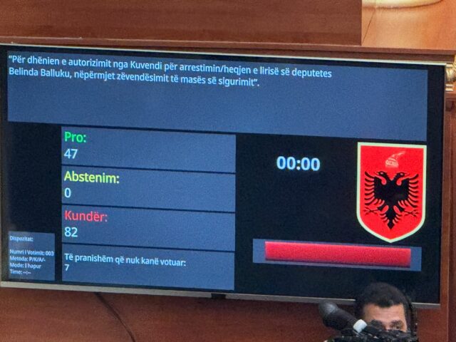 Projektvendimi “Për dhënien e autorizimit nga Kuvendi për imunitetin e deputetes Balluku u rrëzua nga votat e socialistëve dhe 3 të PSD-së.