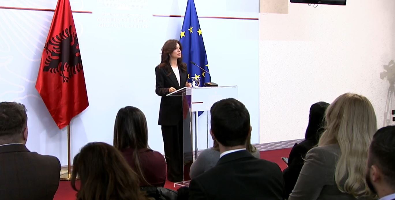 Ministrja për Europën dhe Punët e Jashtme Elisa Spiropali në fjalën e saj në një konferencë për mediat foli për ftesën për kryeministrin Edi Rama për Bordin e Paqes.