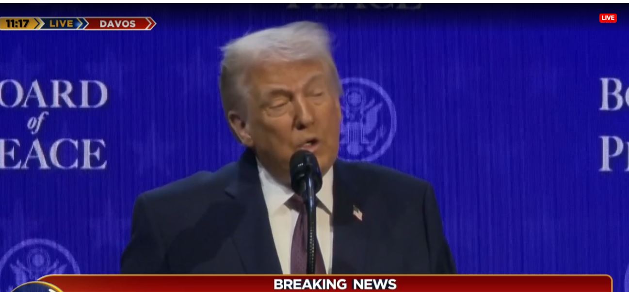 Presidenti amerikan Donald Trump po mban fjalën e tij në Forumin Ekonomik në Davos. Trump theksoi se gjatë qeverisjes së tij ka arritur të ndalojë tetë luftëra.