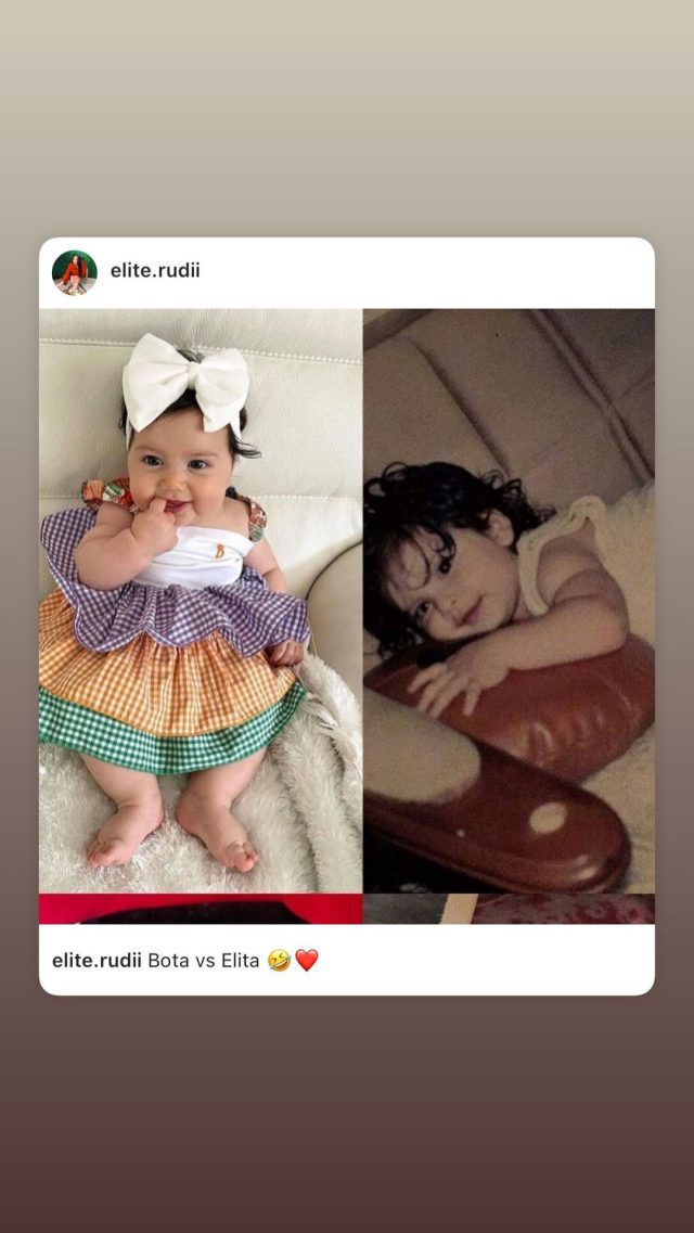 Kanë qenë fansat e Elitës, të cilët kanë bashkuar një foto të moderatores kur ka qenë e vogël dhe të Botës. Nga fotoja, të cilën e ka shpërndarë dhe Elita në profilin e saj, kuptohet se vogëlushja është një kopje e saj.