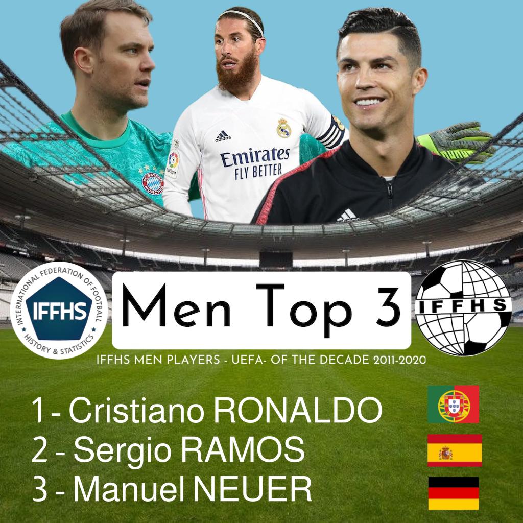 Cristiano Ronaldo është padyshim më i miri në Europë për aq sa i ka dhënë futbollit në këto 10 vite, ku mundi të fitojë 4 topa të artë dhe të mposhtë konkurrencën e çdo lojtari me rrënjë europiane. Ronaldo la pas në renditje Sergio Ramos dhe Manuel Neuer.