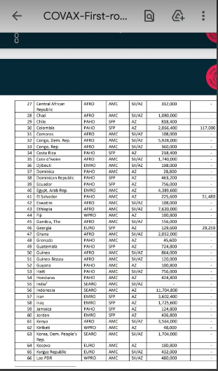 Dorëzimet në këtë fazë kanë filluar në dy vende afrikane në Gana dhe Bregun e Fildishtë, të cilat janë furnizuar me nga 500 mijë doza të vaksinës Astra Zeneca të prodhuara nga Instituti Serum.