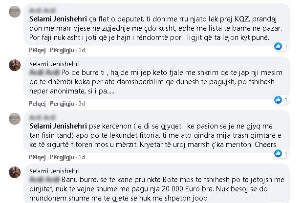 Në momentin që deputeti shpalli thirrjen në Facebook për kandidatë për deputetë në partinë e tij, komentet ironike dhe fyese nuk munguan poshtë postimit.