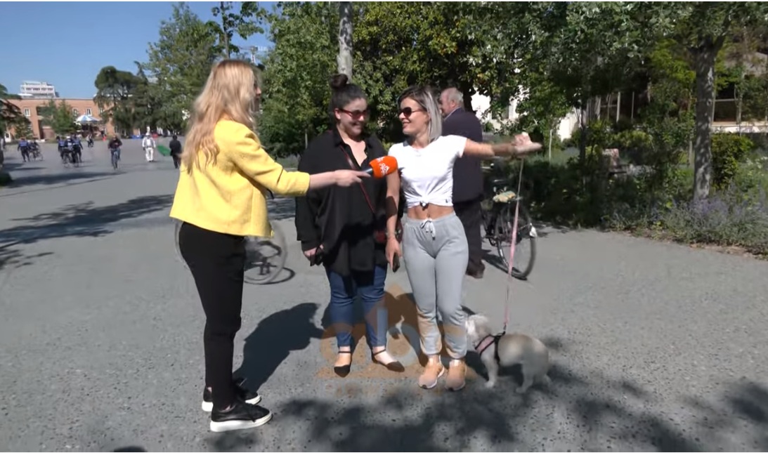 Gjatë intervistave të qytetarëve në sheshin “Skënderbej”, grupi i xhirimit të Abc News ka hasur edhe me dy vajza, njëra prej të cilave shprehet se ka dalë për të shëtitur qenin, kurse tjetra për të shkuar në farmaci.