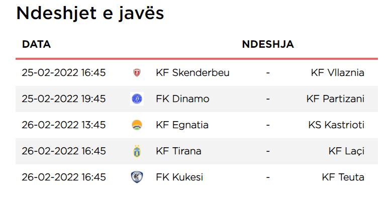 Kështu, në orën 16:45, pas pesë humbjeve kërkon pikët maksimale Skënderbeu i vendit te fundit. Përballë do të ketë Vllazninë, që duke parë duelin direkt mes Tiranës e Laçit, mendon ende për kreun e tabelës.
