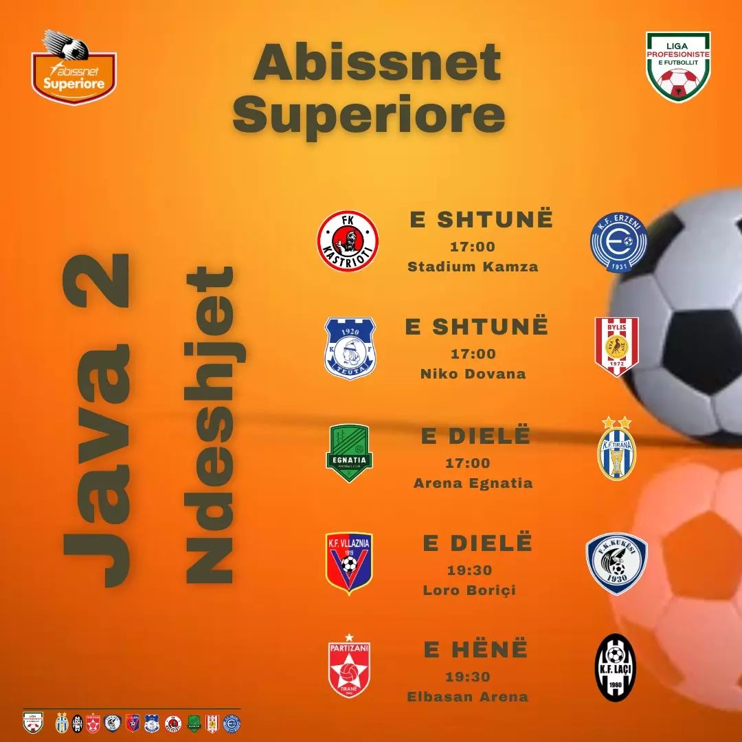 Në mbrëmje, ora 19:30, vëmendjen e merr Vllaznia-Kukësi, një duel për t’u parë, kurse të hënën luhet takimi i fundit i javës së dytë, Partizani-Laçi. / abcnews.al