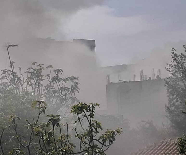 Një godinë dy katëshe është përfshirë nga flakët mesditën e sotme në lagjen “Ali Demi” në Tiranë.