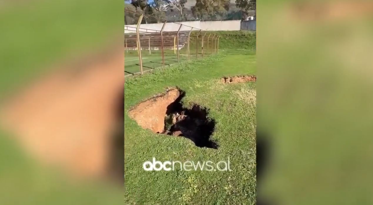 Një fenomen i paprecedentë ka ndodhur në Delvinë, ku si pasojë e reshjeve me intensitet të lartë, një gropë e madhe është hapur pranë fushës së futbollit të qytetit.