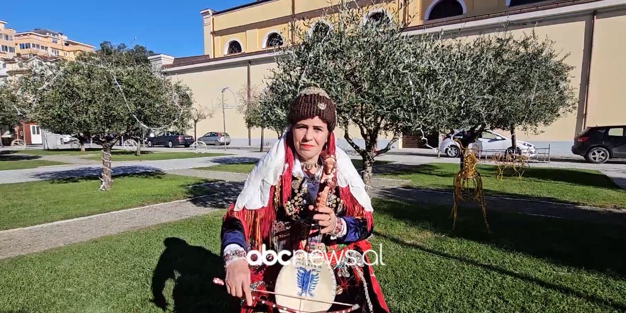 Kjo është Lumturi Nonaj. E veshur me xhubletën e Malësisë së Madhe, me lahutën në dorë e me mijëra vite histori mbi supe.