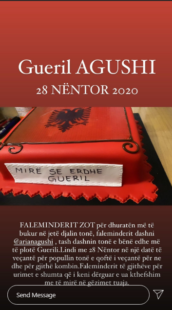 Ndërkohë, dhe bashkëshortja e reperit nuk i ka kursyer fjalët e ëmbla për të voglin. Gjithashtu, Ermira ka treguar dhe tortën super të veçantë për vogëlushin, me flamurin shqiptar kuq e zi ku shkruhej “Mirë se erdhe Gueril”.