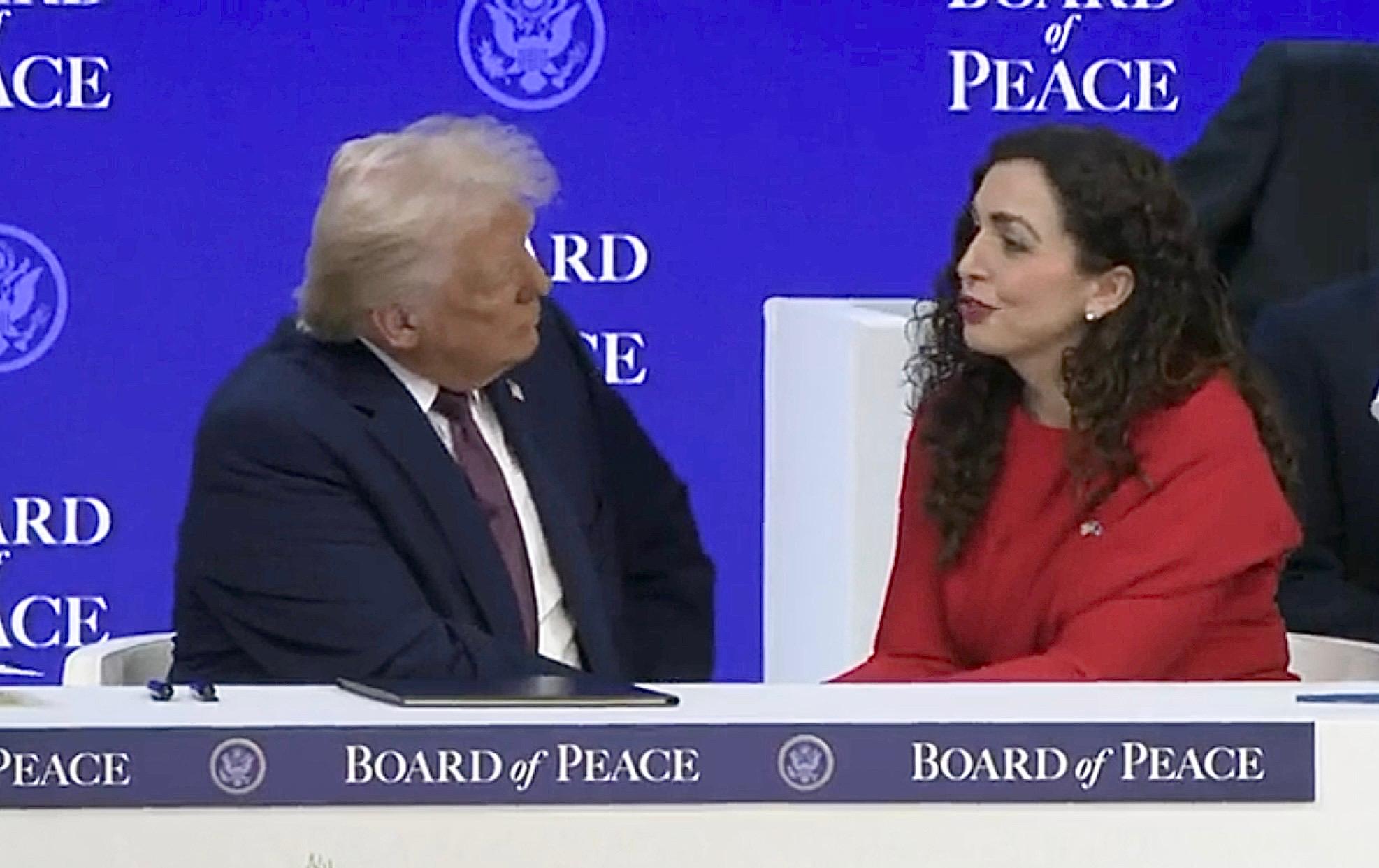 E pranishme ishte edhe presidentja e Kosovës Vjosa Osmani, e cila pranoi ftesën për t’iu bashkuar bordit dhe pati një takim tejet miqësor me presidentin amerikan.