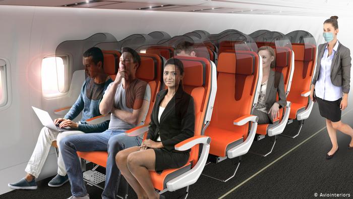 Deri tani nuk ka prova për ndonjë infeksion të marrë në avione. Kompanitë e prodhimit të avionëve tërheqin vëmendjen se avionët janë të pajisur me filtra tepër të fuqishëm, se ajri në avion është të paktën po aq i pastër sa në një sallë operacioni dhe se ajri qarkullon nga lart poshtë, gjë që e zvogëlon edhe më tej rrezikun. Megjithatë shumë linja ajrore si Lufthansa apo Eurowings aktualisht po mendojnë të bllokojnë sediljet e mesit. Edhe kompania easyJet thotë se të paktën për periudhën fillestare pas rifillimit të fluturimeve mes udhëtarëve do të ketë sedilje bosh. Kurse shefi i shoqërisë ajrore Ryanair tha se lënia bosh e sediljeve mes dy pasagjerëve nuk sjell asnjë dobi dhe se nëse Irlanda do të vendosë rregulla të tilla për shoqëritë ajrore, atëhere kompania e tij nuk do të fluturojë.