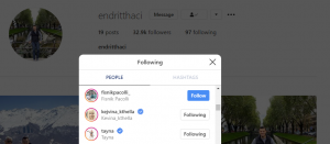 Endriti ndjek më pak se 100 persona në rrjetin social, në mesin e të cilëve ka edhe personazhe të njohur.