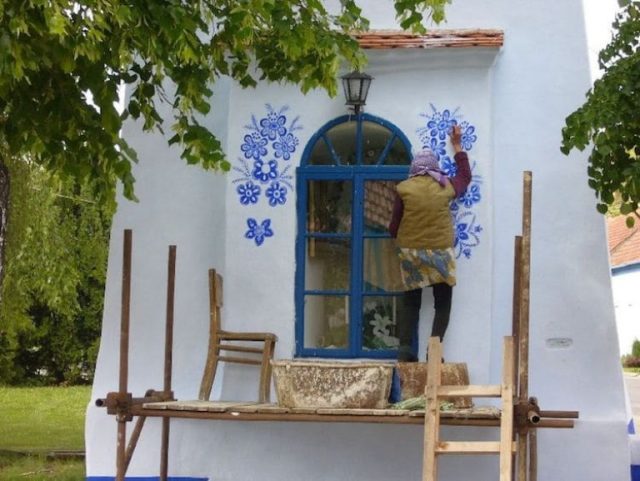 Ajo ka zgjedhur ngjyrën e kaltër për të zbukuruar muret e shtëpive të këtij fshati.