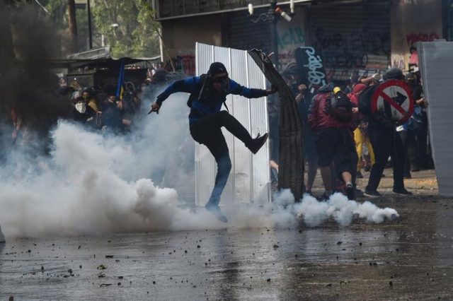 Protestuesit mblidhen çdo ditë para godinës së quajtur “La Moneda” që shërben si ministria e Shtetit duke u përplasur me policinë.