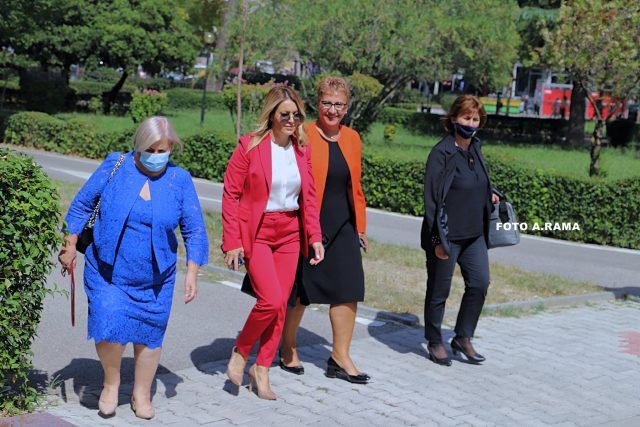 Zonjat e maxhorancës kanë zgjedhur një stil si në një linjë me njëra tjetrën me pantallona dhe xhaketë serioze.