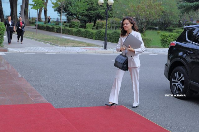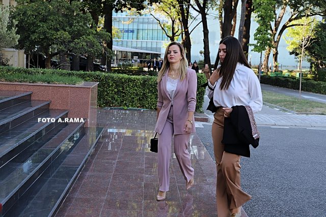 Ashtu në seancën e parë Kryemadhi ka befasuar me look-un e ri ndërsa ka zgjedhur një fustan në rozë të lehtë dhe stilin e ri të flokëve.