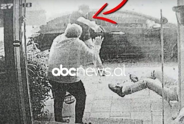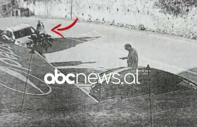 Në foto duket autori Kliti Leka i cili afrohet nga parkingu i makinave, e qëllon Goron nga një distancë shumë e afërt dhe më pas largohet nga vendi i ngjarjes.