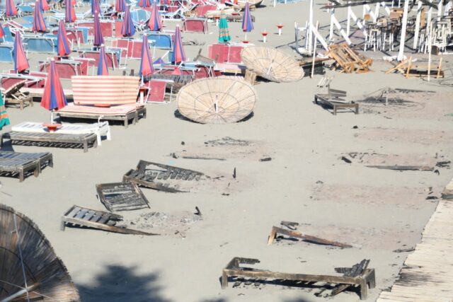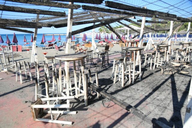 Për shkak të erës, flakë kanë marrë edhe beach bare dhe shezlonge të bizneseve private.