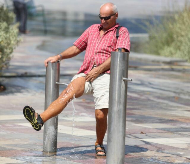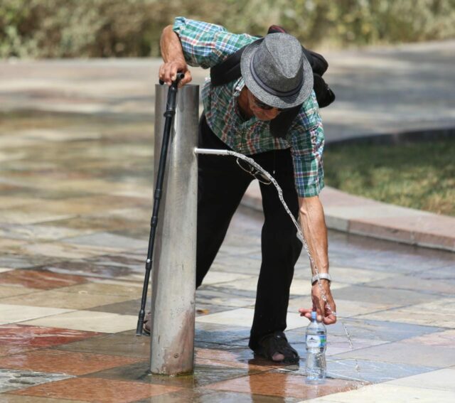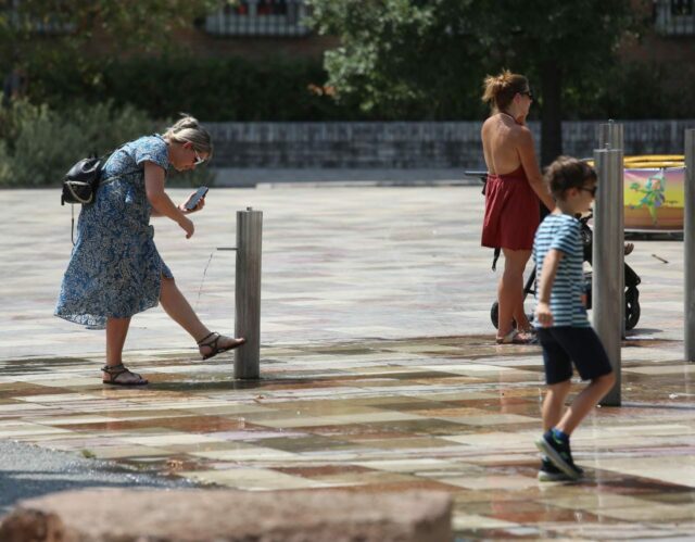 Sakaq, edhe kryeqyteti “nuk ka shpëtuar” nga kjo nxehtësi kaotike, pasi temperaturat kanë arritur deri në 40 gradë C. Si pasojë, shumë qytetarë kanë gjetur mënyrat e tyre për ta përballuar nxehtësinë. Ata nuk kanë lënë pas dore punët e tyre, por kanë shfrytëzuar shatërvanët e vendosur në shesh, janë veshur me kapele dhe kanë përdorur çadrat mbrojtëse nga rrezet e forta të diellit.