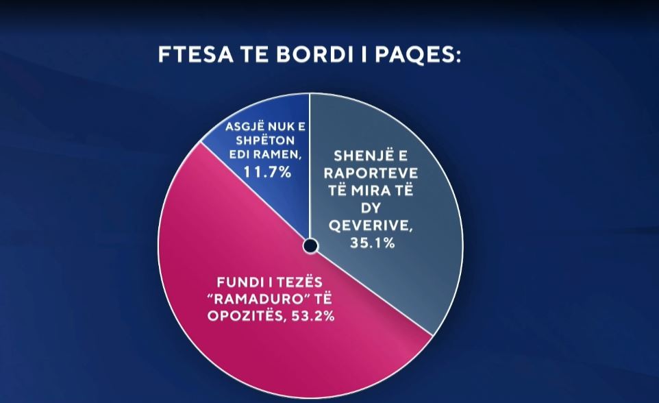 53.2 për qind e të anketuarve mendojnë se ftesa te Bordi i Paqes është fund i tezës ‘Ramaduro’ të opozitës. 35.1 për qind mendojnë se është një shenjë e raporteve të mira të dy qeverive.