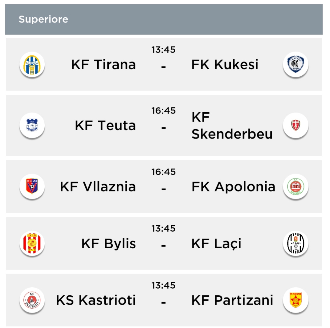 Koha për kampionatet e futbollit në vend. Kupa e Shqipërisë dhe miqësoret ia kanë lënë vendin Superiores, Kategorisë së Parë dhe të Dytë. Sot në çdo cep të Shqipërisë do të luhet futboll, por sigurisht vëmendja kryesore është te Superiorja.