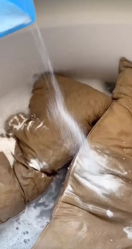 Ajo ka ndarë të gjithë procesin e pastrimit të jastëkëve në disa faza, ku i zhyt në ujë duke i lënë të qëndrojnë për disa orë.