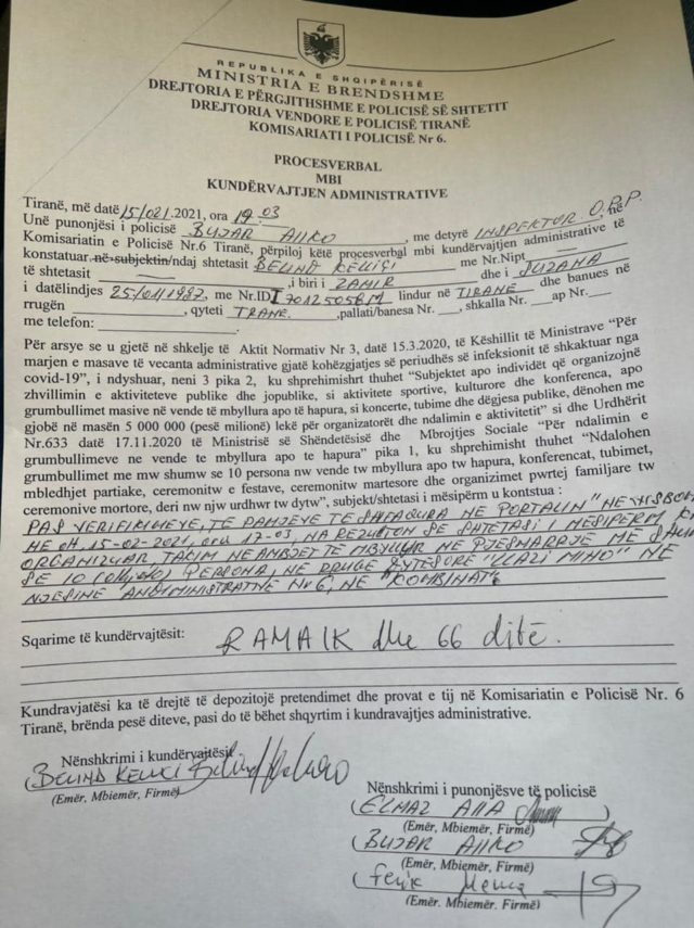 Policia më ka gjobitur me pretendimin se kam shkelur fjalën-urdhër të kryeministrit, për organizim në mjedise të mbyllura me mbi 10 vetë.