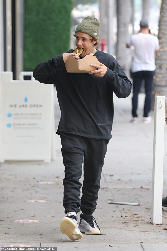 Këngëtari Justin Bieber është fotografuar ditën e djeshme në një rrugë në Beverly Hills, duke ngrënë pica rrugës.