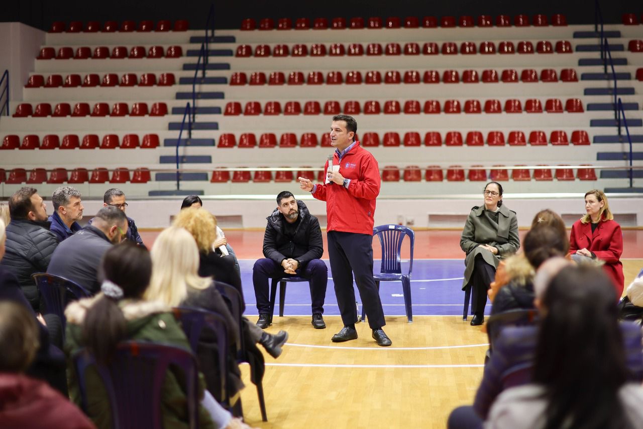 Një kampus sportiv tha ai do të ngrihet në zonën e pishinave publike tashmë të Tiranës. “Ne do të vazhdojmë transformimin me Aquaparkun, me parkun e pishinave. Nisëm pishinat dhe tani do mbarojmë me pjesën e futbollit. Duam të shtojmë edhe fusha tenisi dhe basketbolli dhe volejbolli. Do ta kthejmë në një kampus të vërtetë. Kemi pjesën e lojërave në ambiente të mbyllura. Ne atje duam që të jetë për ekipet sportive por kryesisht një kampus sportiv për çunat dhe gocat e mrekullueshëm të Njësisë 5”.