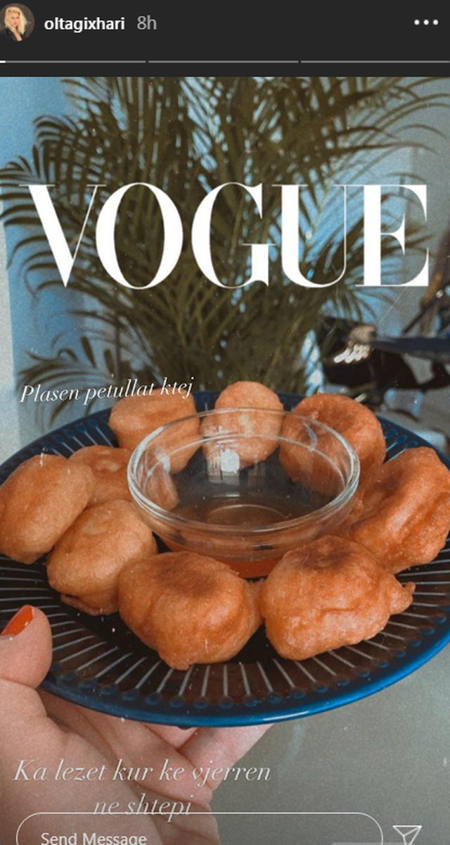 Ajo ka postuar në Instastoryn e saj një pjatë me petulla dhe krahas tregon se janë bërë nga dora e vjehrrës.