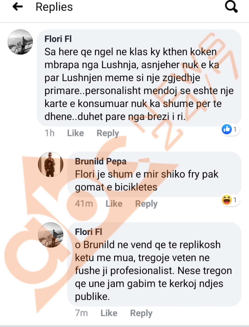 Personalisht mendoj se është një kartë e konsumuar, nuk ka shumë për të dhënë. Duhet parë nga brezi i ri” shkruan tifozi verdhejeshil. Pepa se ka pritur mirë komentin e bërë nga tifozi dhe i është përveshur, duke shkruar: “Flori, je shume i mirë. Shko fryj pak gomat e biçikletës”. / abcnews.al