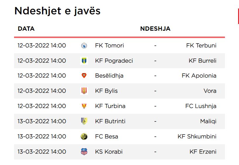 Tomori-Tërbuni dhe Besëlidhja-Burreli janë dy nga ndeshjet mjaft interesante të ditës së sotme, që nisin prej orës 14:00. Turbina-Lushnja është një finale për mbijetesën, ndërkohë që luhet edhe Pogradeci-Burreli.