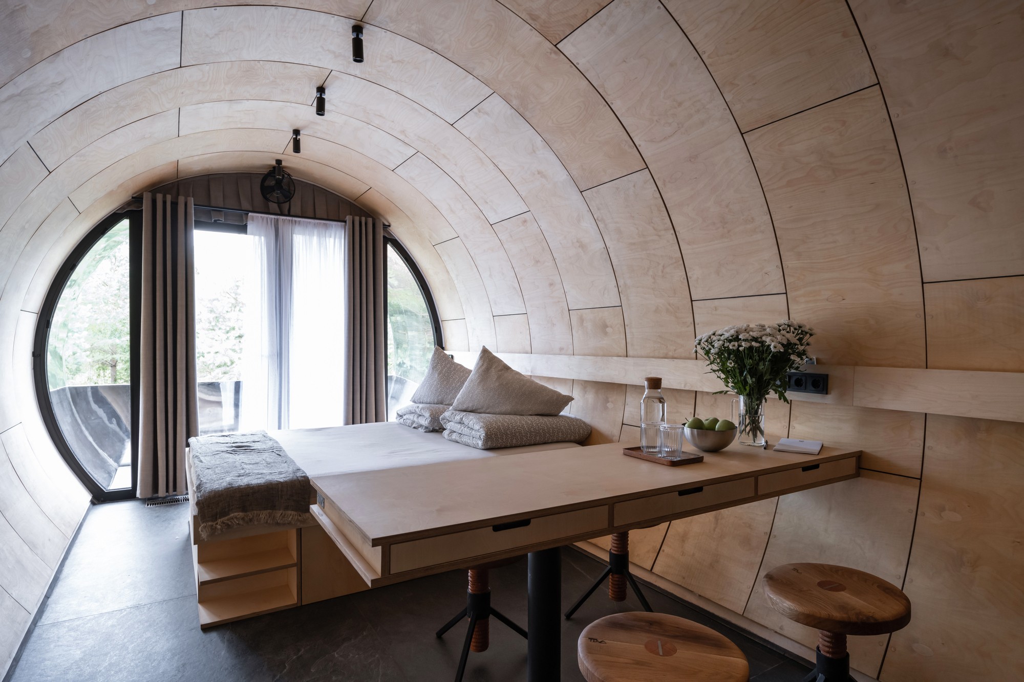 Në njërën anë, një dritare ofron një pamje të peisazhit dhe brenda ka një dhomë gjumi, kuzhinë si dhe banjo. “Ideja ishte të krijonim diçka me një element magjik”, rrëfeu Sergey Kuznetsov.
