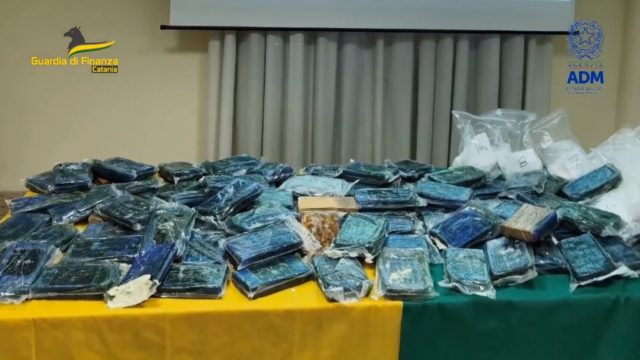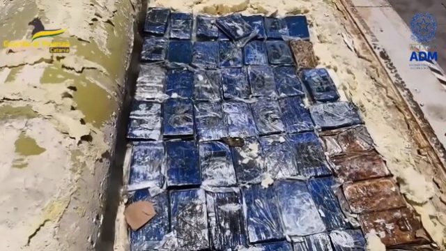 Pas operacionit të Guardia di Finanza të komandës provinciale të Katanias, më shumë se 100 kg kokainë me vlerë 12 milionë euro u sekuestrua.