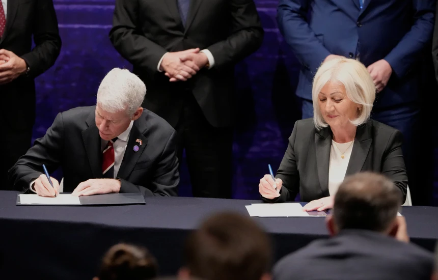 Kryeministri kroat, Andrej Plenkoviq dhe kryetarja e Këshillit të Ministrave të Bosnjës, Borjana Kristo, nënshkruan marrëveshjen në prani të sekretarit të Energjisë të SHBA-së, Chris Wright në margjinat e një samiti të vendeve të rajoneve të Baltikut, të Detit të Zi dhe Adriatikut.