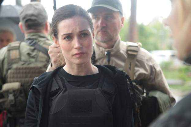 Marin kishte veshur një jelek antiplumb, ndërsa u filmua duke ecur me zyrtarë dhe ushtarë.